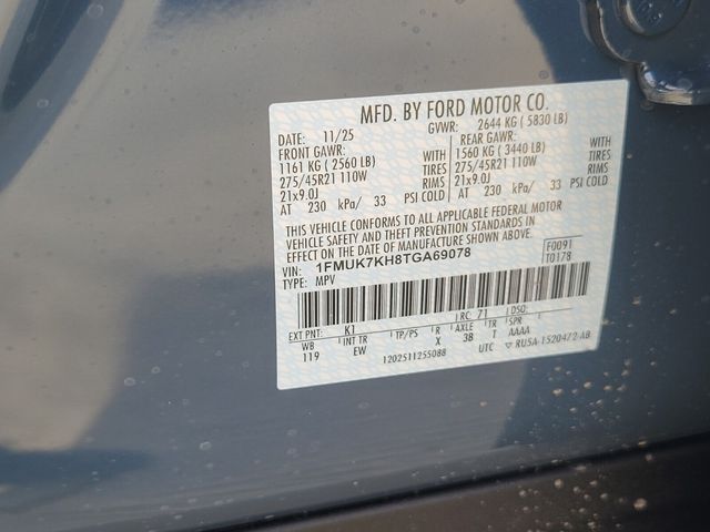 - VIN : 1FMUK7KH8TGA69078