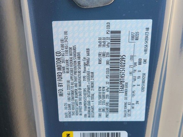 1st Row Carpeted Black Floor Mats, 4-Wheel Disc Brakes, ABS brakes, Air Conditioning, Alloy wheels, AM/FM Stereo, Auto High-beam Headlights, Automatic temperature control, Brake assist, Bumpers: body-color, Compass, Delay-off headlights, Driver door bin, Driver vanity mirror, Dual front impact airbags, Dual front side impact airbags, Electronic Stability Control, Emergency communication system: 911 Assist, Exterior Parking Camera Rear, Four wheel independent suspension, Front anti-roll bar, Front Bucket Seats, Front Center Armrest, Front dual zone A/C, Front reading lights, Fully automatic headlights, Illuminated entry, Knee airbag, Leather Shift Knob, Low tire pressure warning, Occupant sensing airbag, Outside temperature display, Overhead airbag, Overhead console, Panic alarm, Passenger door bin, Passenger vanity mirror, Power door mirrors, Power steering, Power windows, Radio data system, Rain sensing wipers, Rear anti-roll bar, Rear Parking Sensors, Rear window defroster, Remote keyless entry, Speed control, Speed-sensing steering, Speed-Sensitive Wipers, Split folding rear seat, Sport steering wheel, Steering wheel mounted audio controls, SYNC 4, Tachometer, Telescoping steering wheel, Tilt steering wheel, Traction control, Trip computer, Variably intermittent wipers, Voltmeter, and Wheels: 18" x 8" Painted Shadow Silver Cast Aluminum. *Some rebates have qualifications. ##Ford Credit Retail Bonus Cash Rebate requires Ford Credit financing, not all buyers will qualify. ##Select Inventory Retail Customer Cash Rebate, vehicle must have arrived 61 days or more prior to sale, limited supply. ##Open or Special Trade Assistance Cash Rebate requires Trade in vehicle that is 1995 or newer. ##Price includes: $1000 - Retail Customer Cash. Exp. 03/31/2026